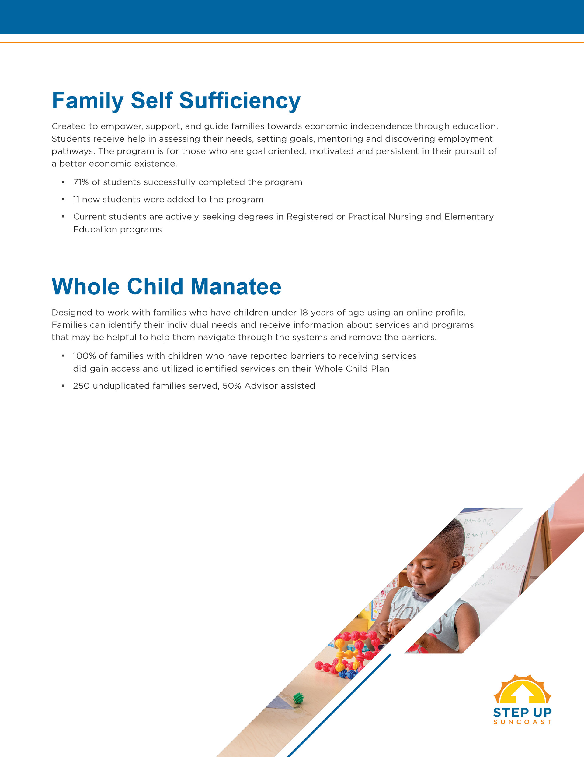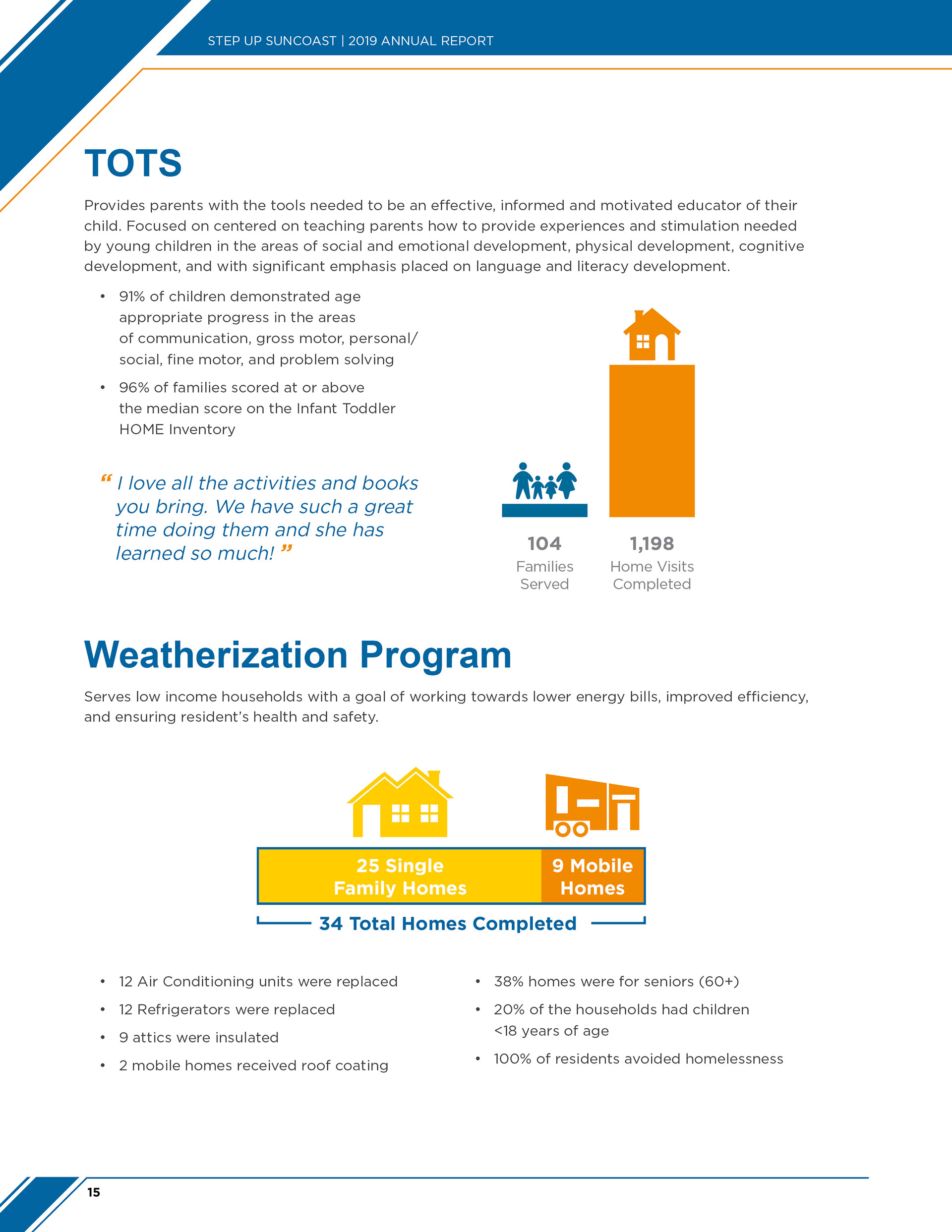 Various pages taken from the 2019 Step Up Suncoast Annual Report Program